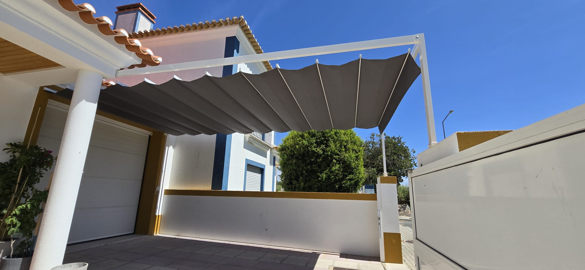 Modelo apto para zonas de ocio. Regule la entrada del sol y la temperatura replegando/expandiendo esta pérgola.